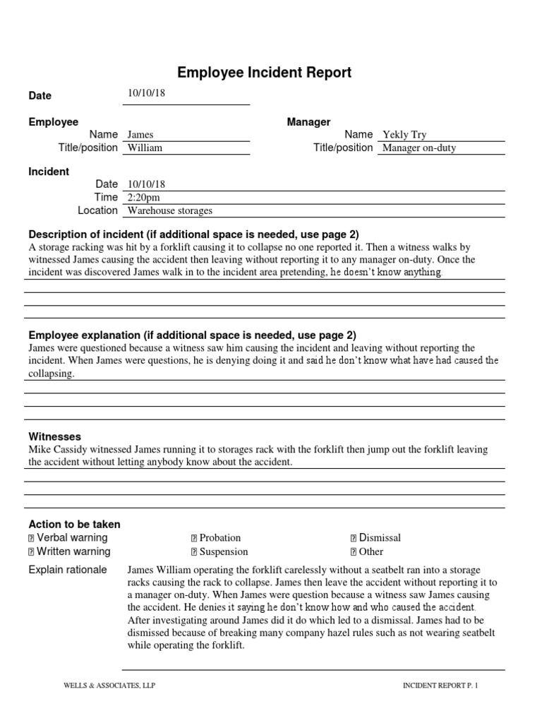 Employee Incident Report Form PDF Violence