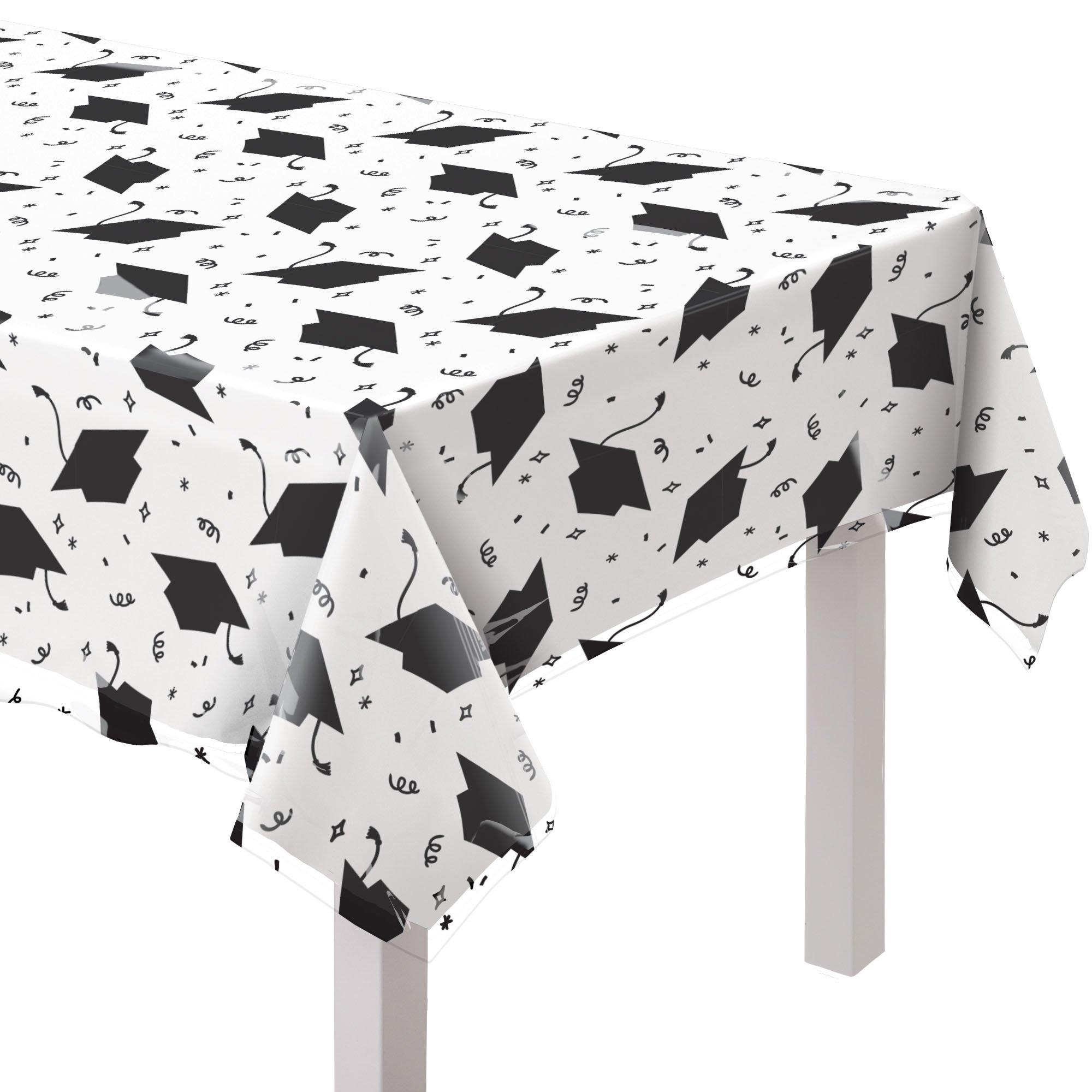 Clear Grad Cap Plastic Table Cover, 54in x 108in Party City