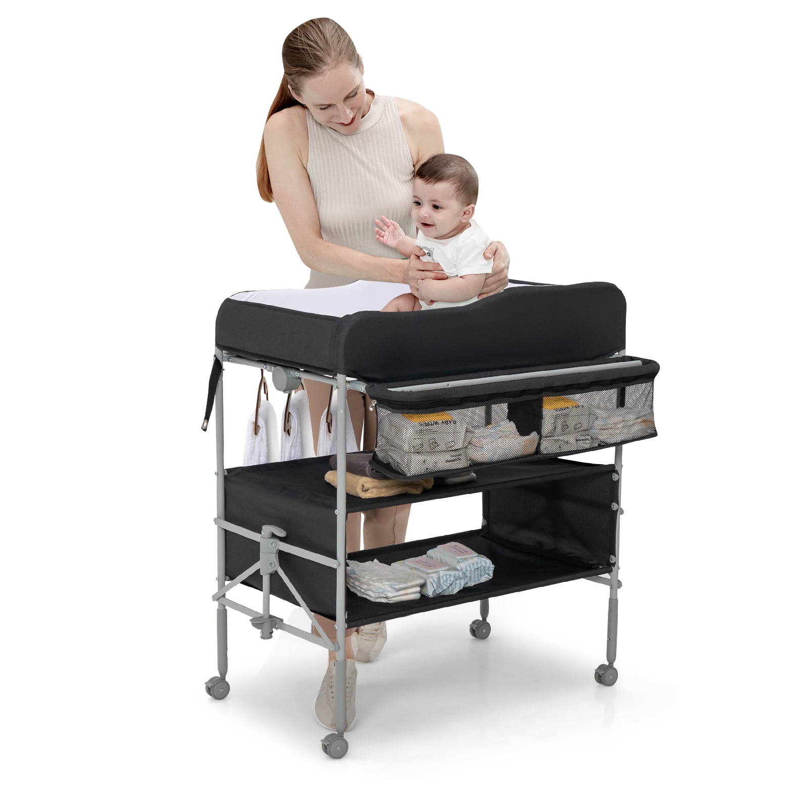 Gymax Baby Changing Table Portable Newborn Nursery Organizer Adjustable Baby Changing Station With Wheels shop portable baby changing table, foldable diaper change table with wheels at target. removable wheels & 3 adjustable heights: Portable, black, and with wheels for easy movement. versatile mobile changing table: You can use this changing table to change diapers & clothes, massage & nursing, have fun together or as a dresser when your. baby changing. Baby Changing Station With Wheels.