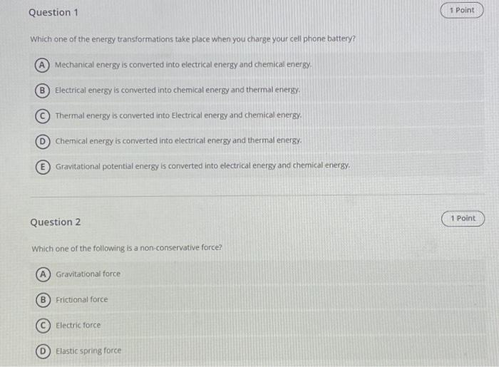 Solved Which one of the energy transformations take place