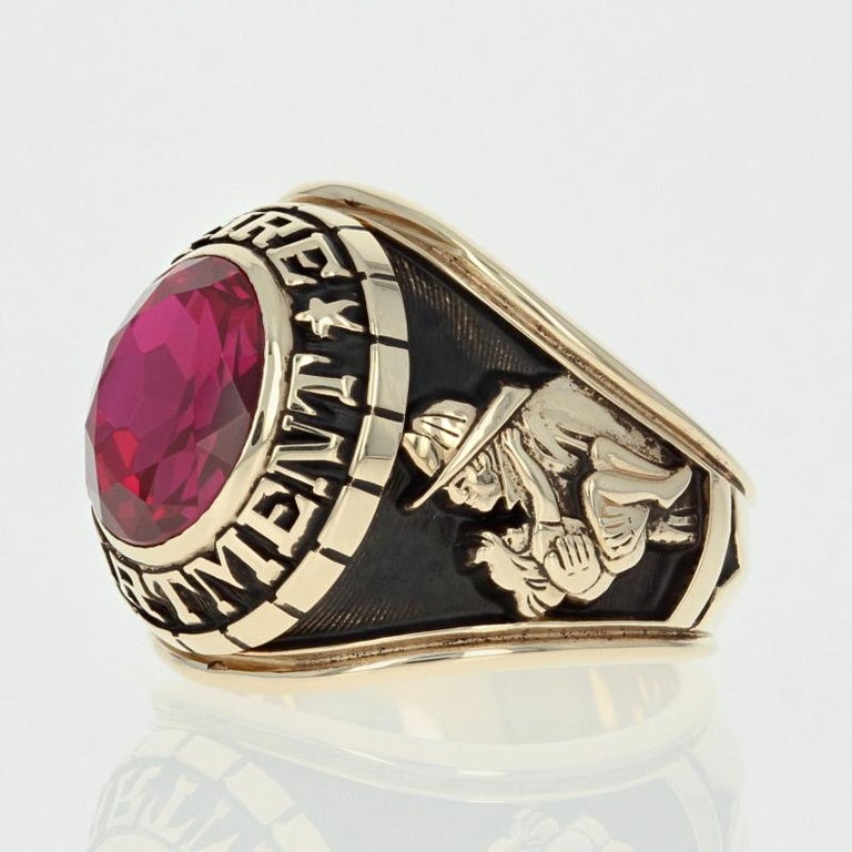 Firefighter's Ring, 10 Karat Yellow Gold Fire Department Synthetic Ruby