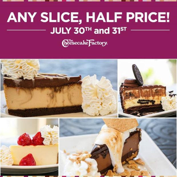 The Cheesecake Factory 1/2 Price Cheesecake (July 30th & 31st)