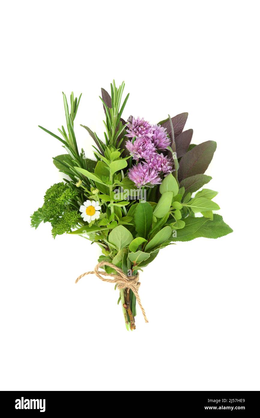 Bouquet garni of assorted fresh herbs tied in a bunch with chives How To Tie Herbs For Cooking One way is to create a sachet with cheesecloth, put the herbs in it, tie it and. Making a bouquet garni is an easy method to add flavor to soups, stocks and stews. The next time you're cooking a dish that contains herbs, liven up your routine by making a bouquet garni to bundle your herbs together. You don’t really. How To Tie Herbs For Cooking.