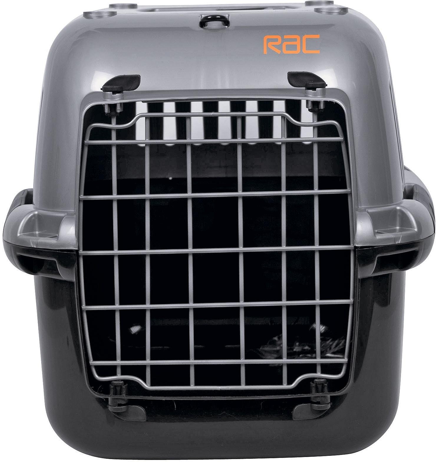 RAC Pet Carrier Plastic Portable Transport Medium Cage Black/Silver M Rac Pet Carrier Medium Comes flat packed with a clip on bowl. Price and other details may vary based. This high quality pet carrier allows pets to be safely transported and monitored at the same time. This high quality pet carrier allows pets to be safely transported and monitored at the same time. Check each product page for other buying options. Lightweight, well ventilated. Rac Pet Carrier Medium.