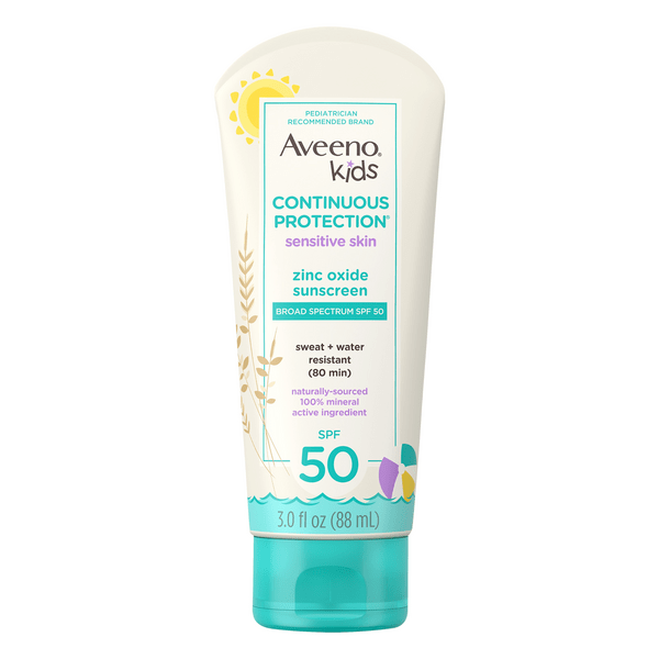 Save on Aveeno Sunscreen Kids Continuous Protection Sensitive Skin SPF
