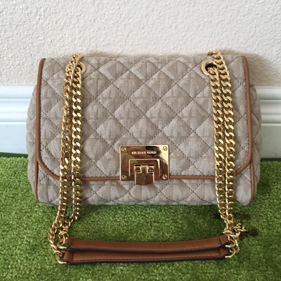 พร้อมส่ง MICHAEL KORS VIVIANNE KHAKI DENIM QUILTED MEDIUM SHOULDER FLAP BAG ของแท้ Shopee Thailand