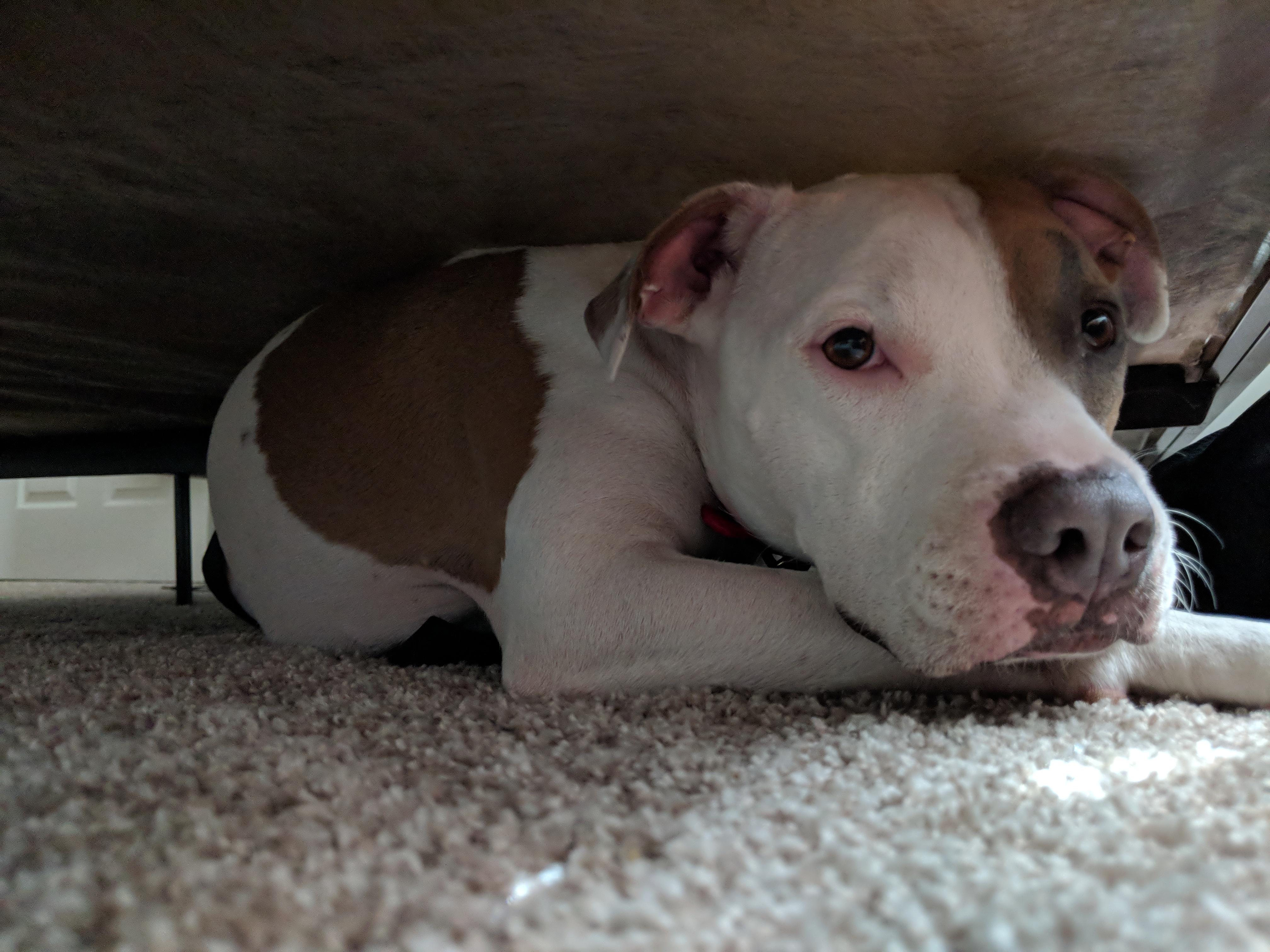 Does your pittie enjoy crawling and sleeping under the bed? Here is Levi, underneath the bed is Why Does My Dog Crawl Under The Bed Dog hiding may seem strange at times, but why do they do it? However, it can also indicate mental or physical issues that are worth. If your dog is feeling. Could my dog be crawling under the bed because they are bored? Dogs are den animals by nature, and they seek out small,. Sometimes dogs go off on their own,. Why Does My Dog Crawl Under The Bed.