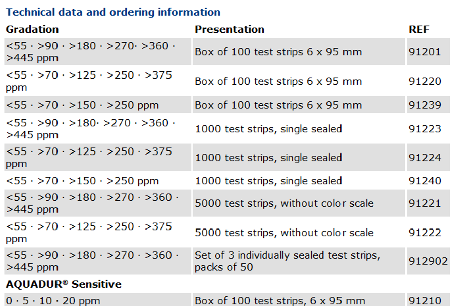 AQUADUR Water Analysis Sensitive Test Strips By