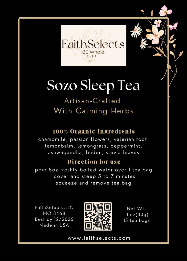 Sozo Sleep Tea 15 Tea Bags without Microplastics, Organic Sleep Blend