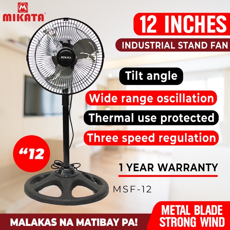 Mikata MSF12 Industrial Stand Fan Electric Fan 12inch 3 Blades Metal