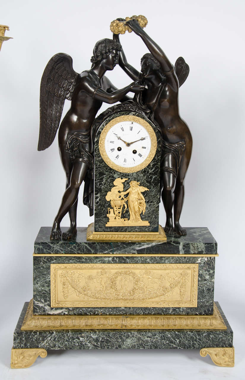 Large French Clock Garniture For Sale at 1stdibs