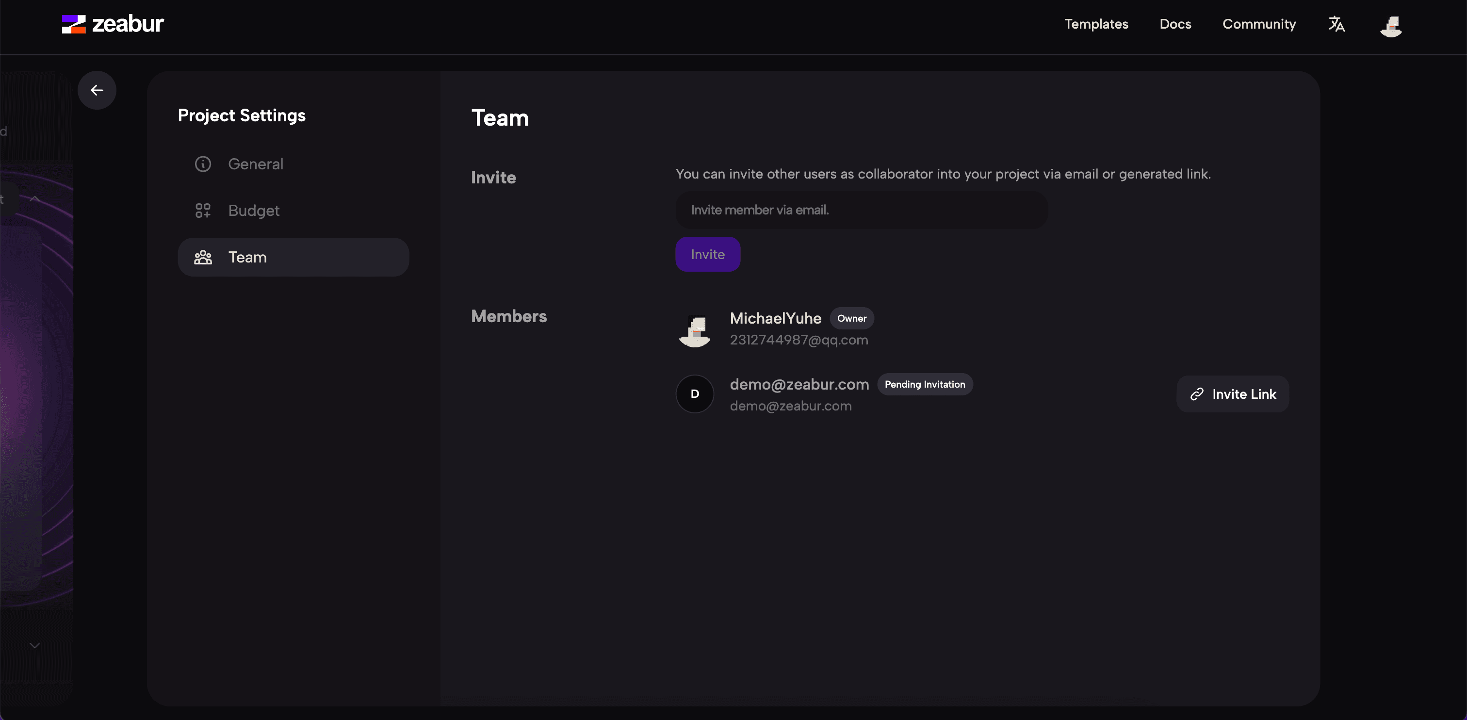 Invite Member Zeabur
