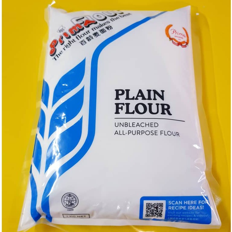 Flour Plain Flour Unbleached PRIMA Brand Original Pack 1kg All Purpose Flour Malaysia Brand A high quality flour that contains no benzoyl peroxide. Also ideal for making cookies, cakes, pau, tarts, noodles and other pastries. It has the fairly common taste and odour that wheat flour would have. In malaysia, some people even called it kentucky flour as a reference for the flour used to fry the delicious kfc chicken. Fine powder that flows. All Purpose Flour Malaysia Brand.