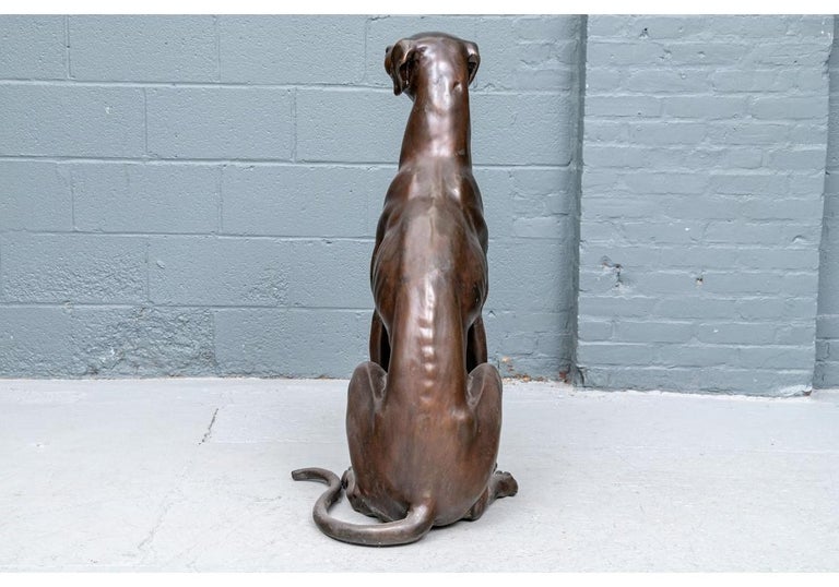 Bronze Sitting Life Size Greyhound Sculpture For Sale at 1stDibs
