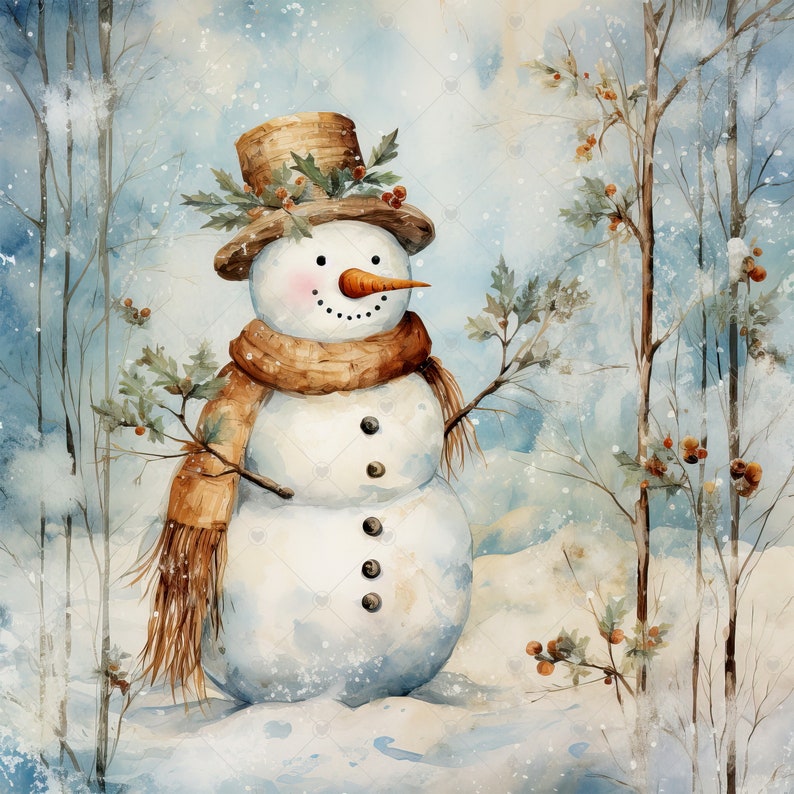 Vintage Shabby Chic Snowman Clipart Bundle 10 High Quality Watercolor