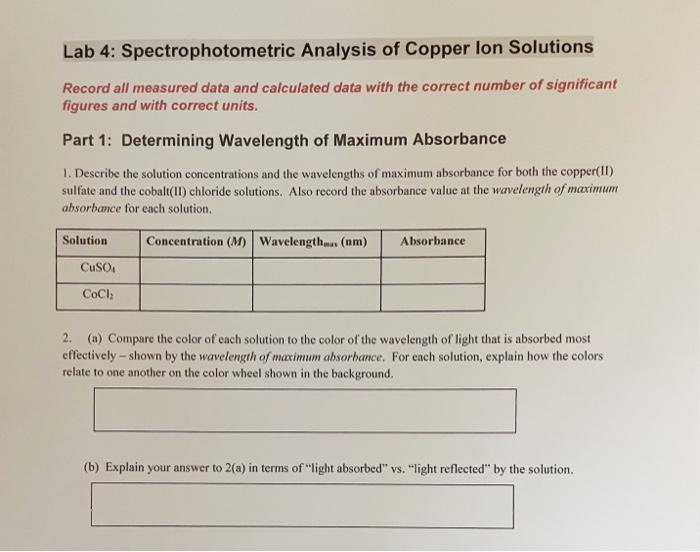 Solved Lab 4 Spectrophotometric Analysis of Copper lon