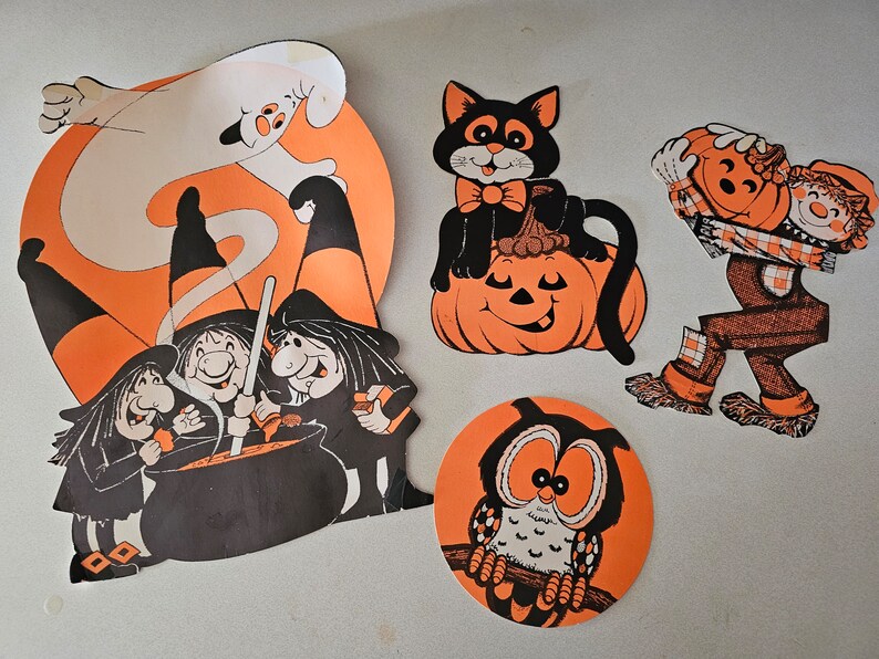 Halloween Decorations Set Cardboard Paper Wall Decor Vintage Etsy Vintage Halloween Cardboard Decorations Get the best deals for vintage cardboard halloween decorations at ebay.com. Check out our halloween cardboard vintage selection for the very best in unique or custom, handmade pieces from our seasonal decor shops. K1tpde 12pcs vintage halloween cutout home decoration, pumpkin witch cutout decor, large size halloween cutouts cardstock, retro halloween. Get the best deals for vintage halloween decorations at. Vintage Halloween Cardboard Decorations.