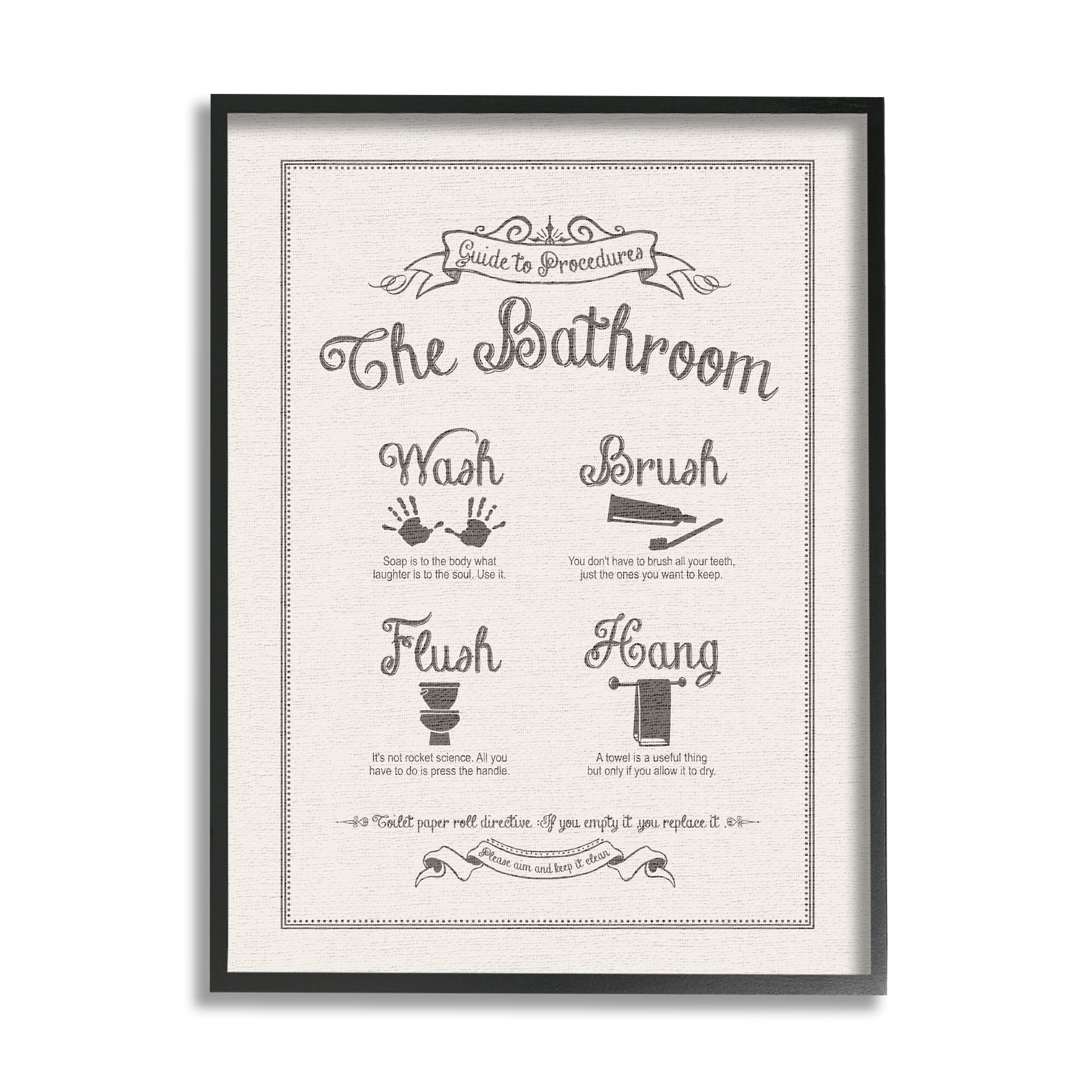 Stupell Home Decor Wash Your Hands Bathroom Framed Wall Art Stupell Home Decor Bathroom Procedures Canvas Wall Art Our premium hand stretched canvas is mounted. Buy stupell industries guide to bathroom procedures linen look stretched canvas wall art, proudly made in usa: Our products include stretched canvas, wooden plaques, framed art. Elevate your home or office to the next level with stupell framed floating canvas wall decor. Stupell industries offers beautiful wall art and décor for your home.. Stupell Home Decor Bathroom Procedures Canvas Wall Art.