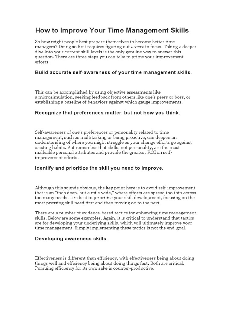 How To Improve Your Time Management Skills PDF Professional Skills