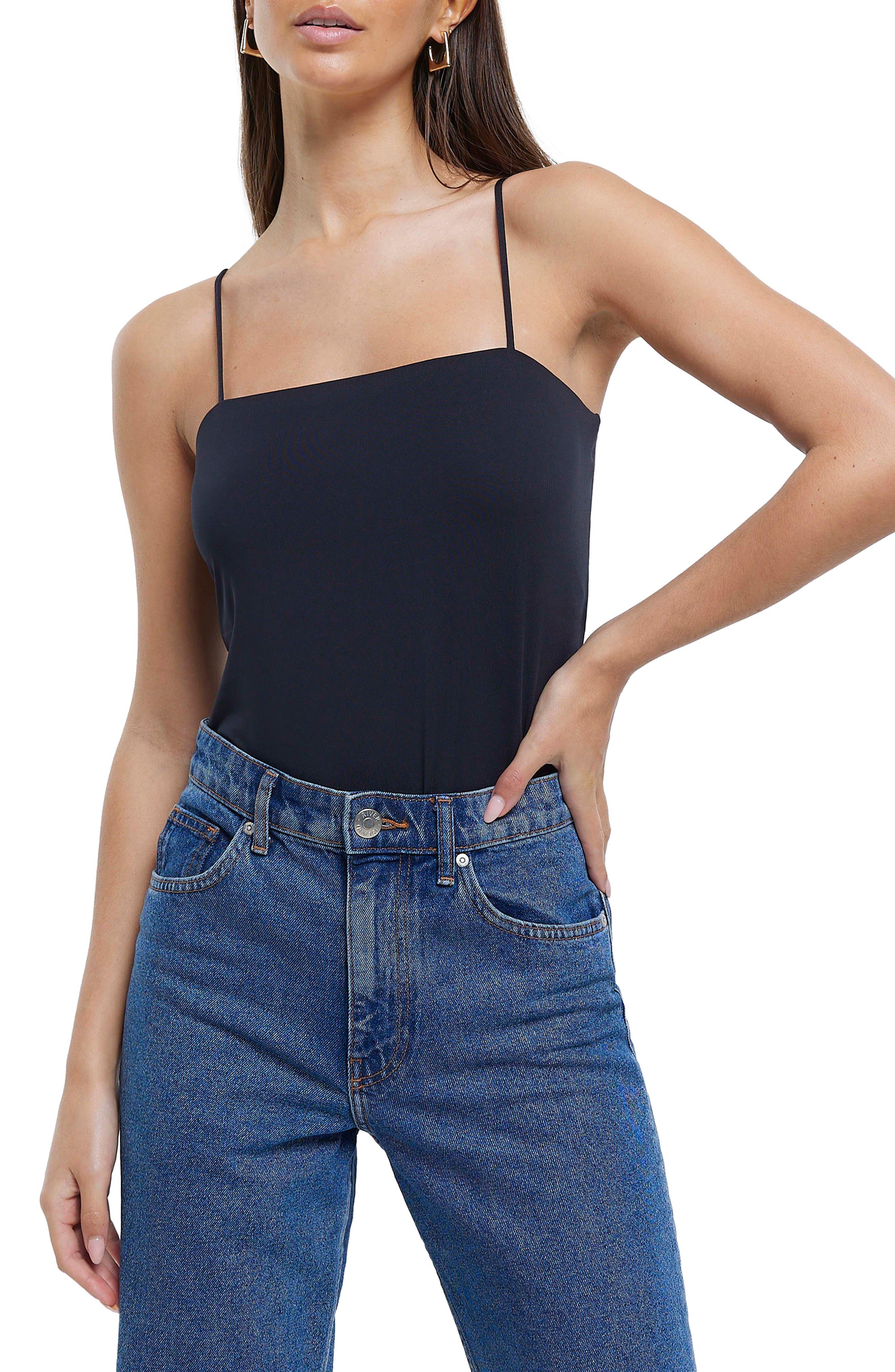 River Island Square Neck Bodysuit in Blue Lyst