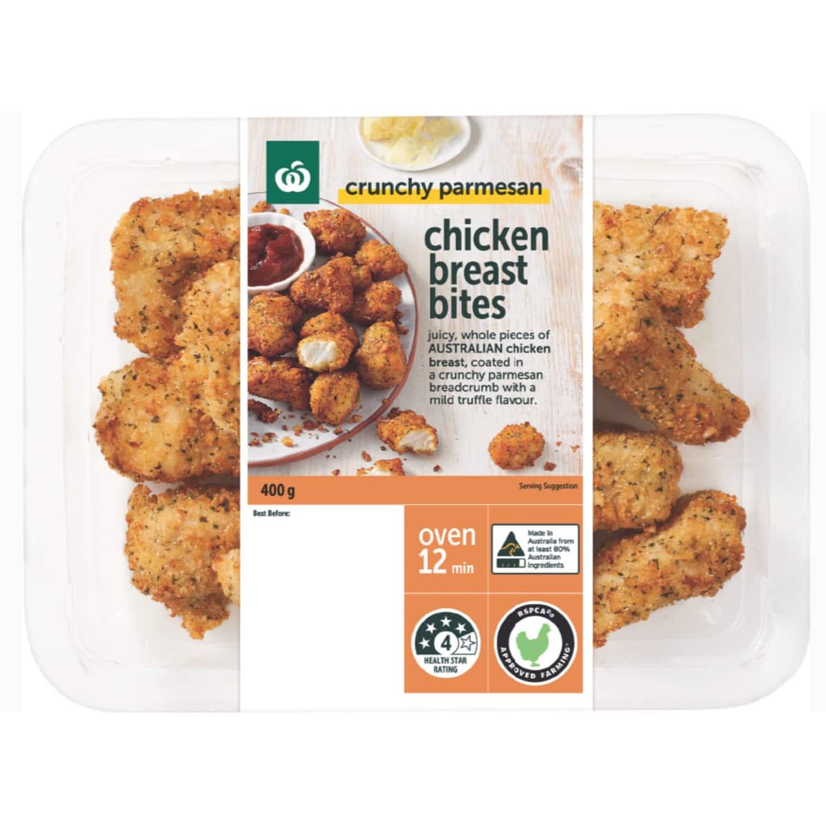 Woolworths Crunchy Parmesan Chicken Breast Bites 400g bunch