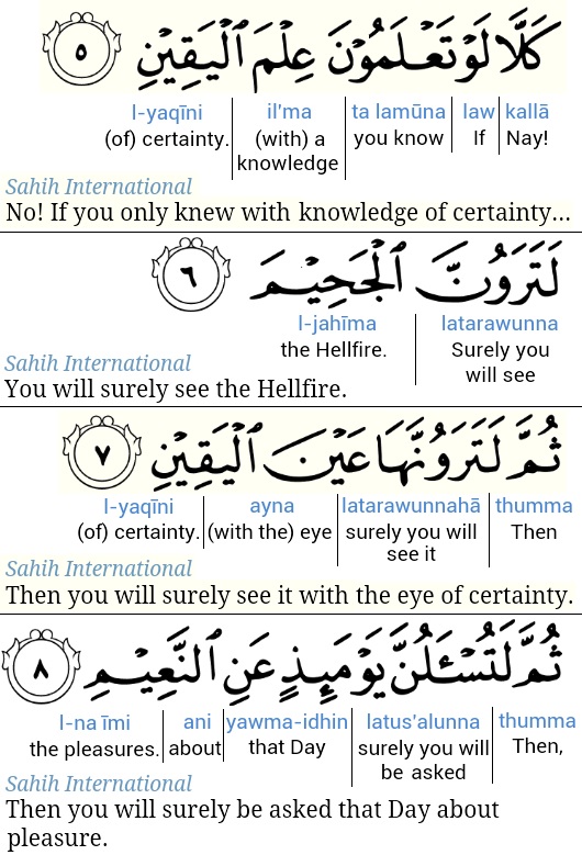 Surah Takathur Ayat 5 (1025 Quran) With Tafsir My Islam What Does Surah Takathur Mean Period of revelation abu hayyan and shaukani say that surah at. The surah was revealed in mecca, ordered 102 in the quran. The surah title means the rivalry in world increase. التكاثر) is the 102nd chapter of the qur’an. The surah titled in english means “vying for increase” and it consists of 8. The surah takes its name from the. What Does Surah Takathur Mean.