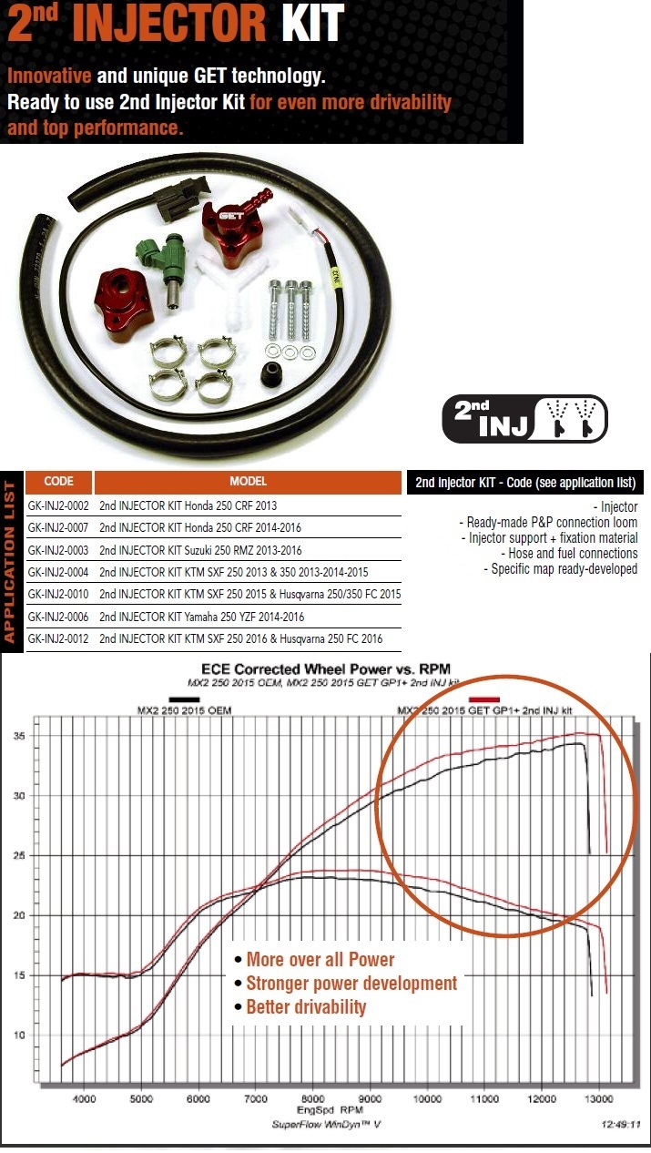 2nd INJECTOR KITs... GET Japan株式会社 Eyestec Facebook Get 2Nd Injector Kit Yz250F The get 2nd injector kit has been developed to increase the performance on 250cc mx engines and to support the stock injector maximizing. Twisted development mapped vortex ecu and 2nd injector airbox. Any of you have experience with the 2nd injector kit from td? Description the 2nd injector kit has been developed to increase the performance on 250cc mx engines. Get 2Nd Injector Kit Yz250F.