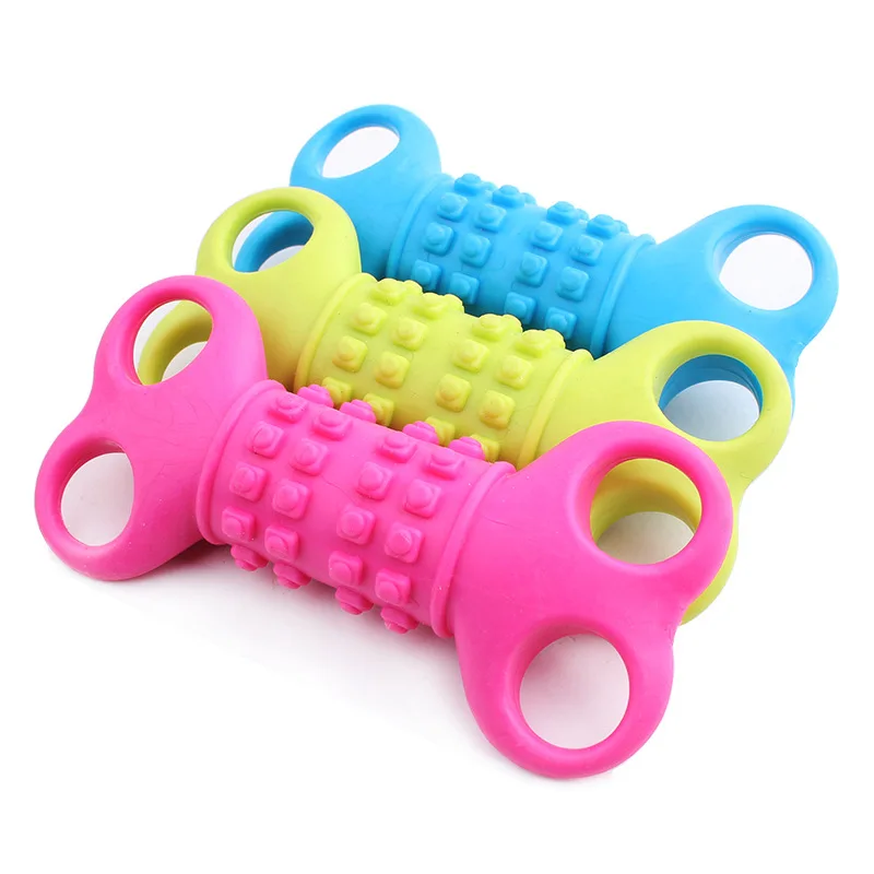 New Resistant To Bite Bone Dog Puppy Molars Rubber Ball Play For Teeth
