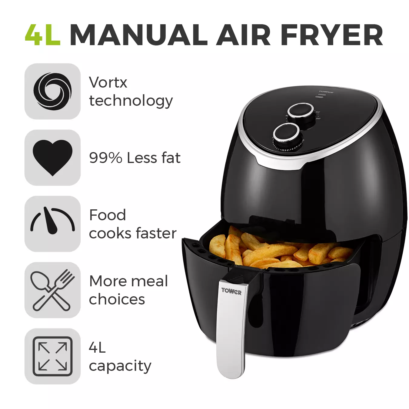 Vortx 4L Manual Air Fryer Air Fryers Tower Housewares