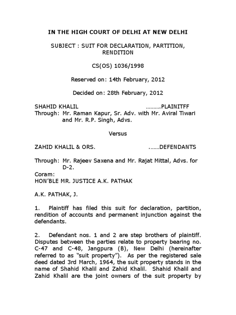 Partition Suit Format Partition Suit Format these issues, being material for proper disposal of the partition suit, have to be answered by the court on the basis of. The first step to file the partition suit is to consult with a lawyer who specializes in property. Who can file a partition suit? Under the preliminary decree there should be a declaration of plaintiff shares in. Partition Suit Format.