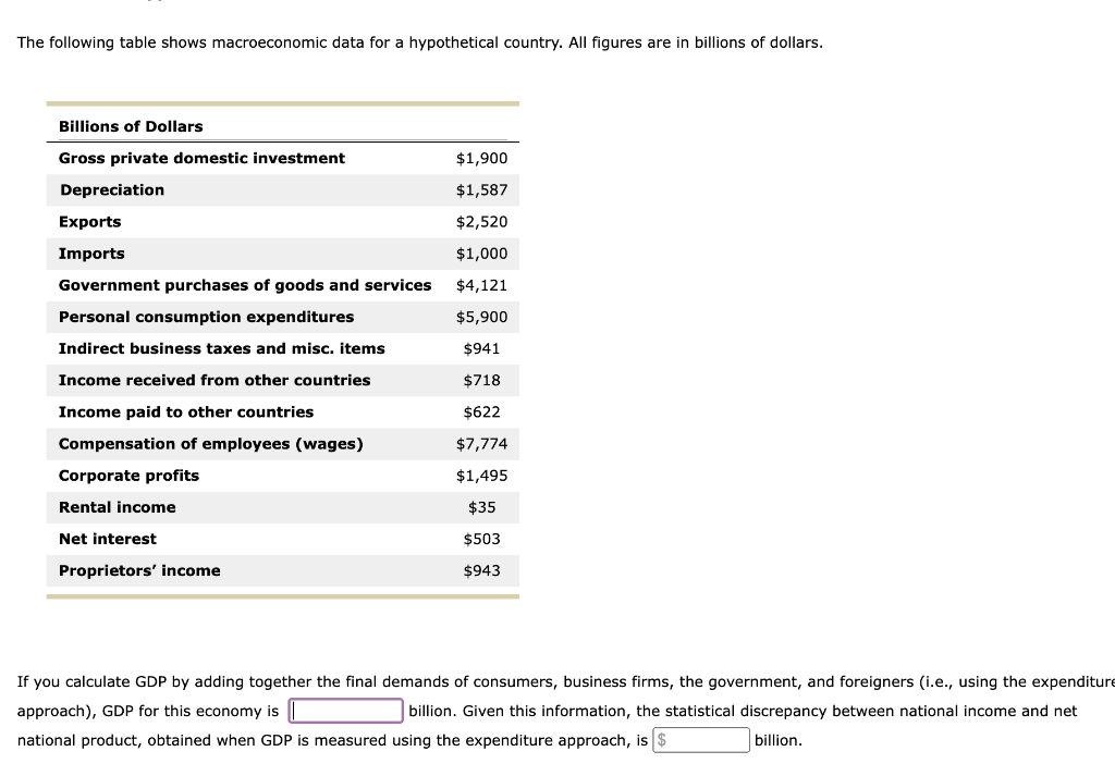 Solved The following table shows macroeconomic data for a