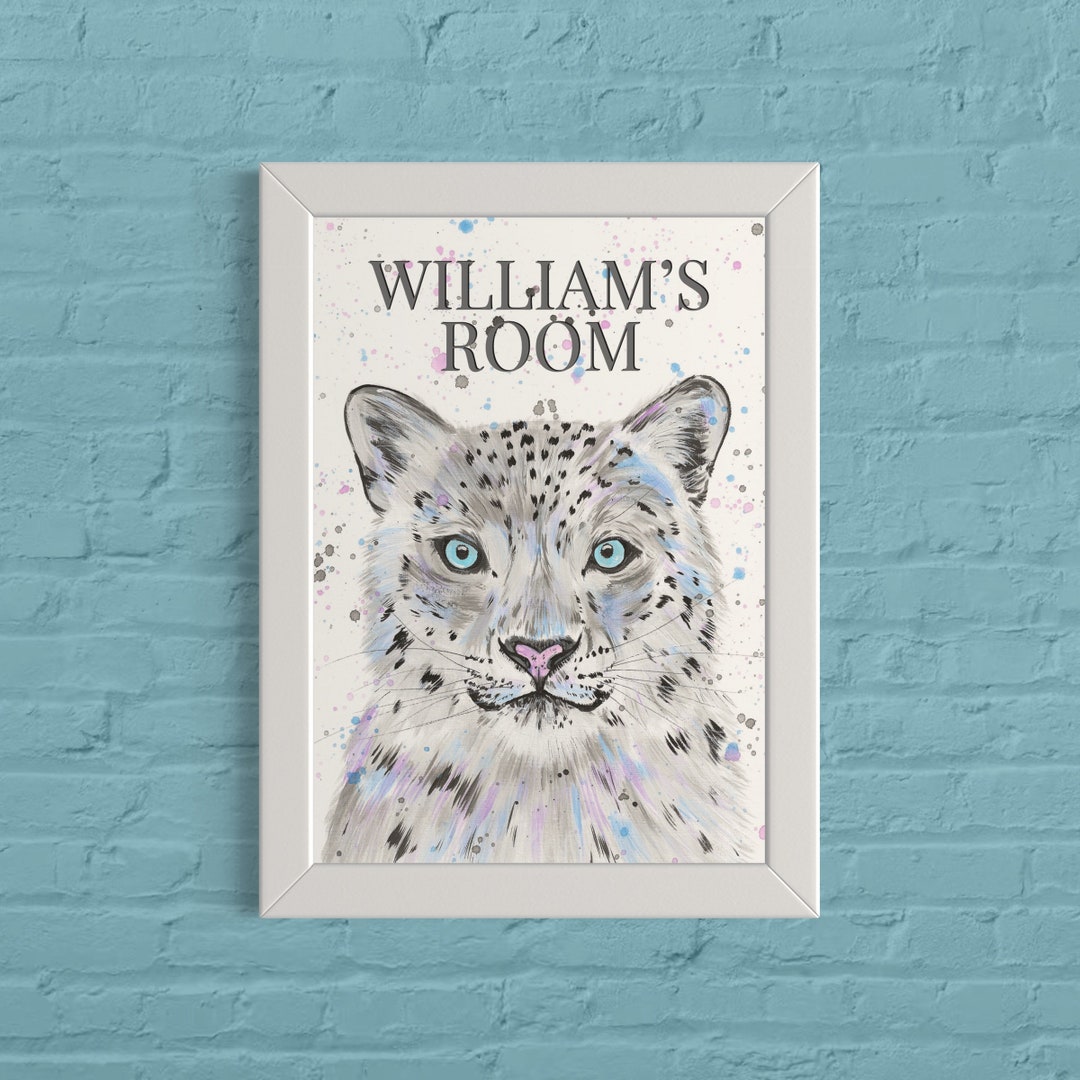 Personalised Snow Leopard Art Print, Custom Room Sign, Contemporary