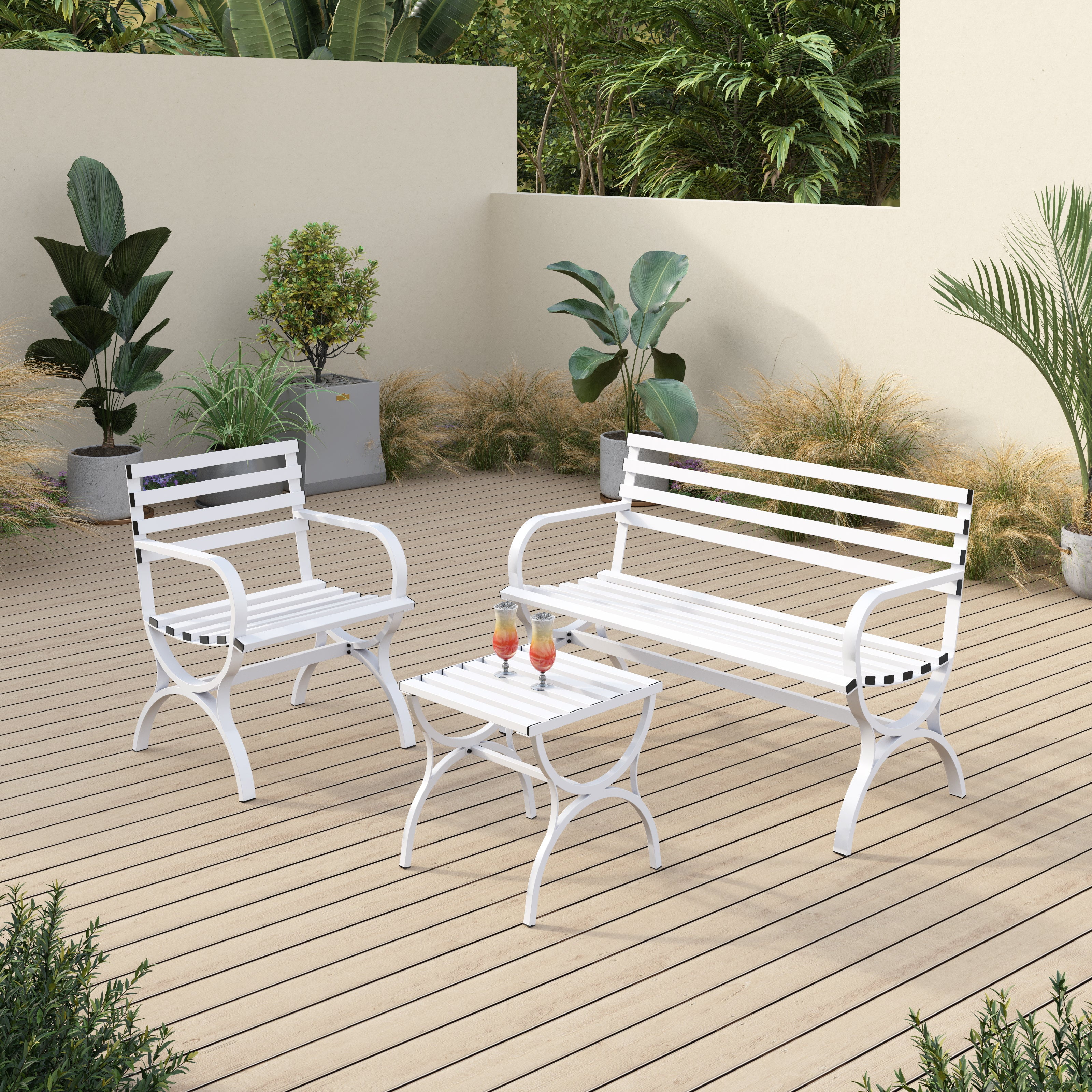 Sophia & William 3 Pieces Outdoor Metal Bench Table Set Patio