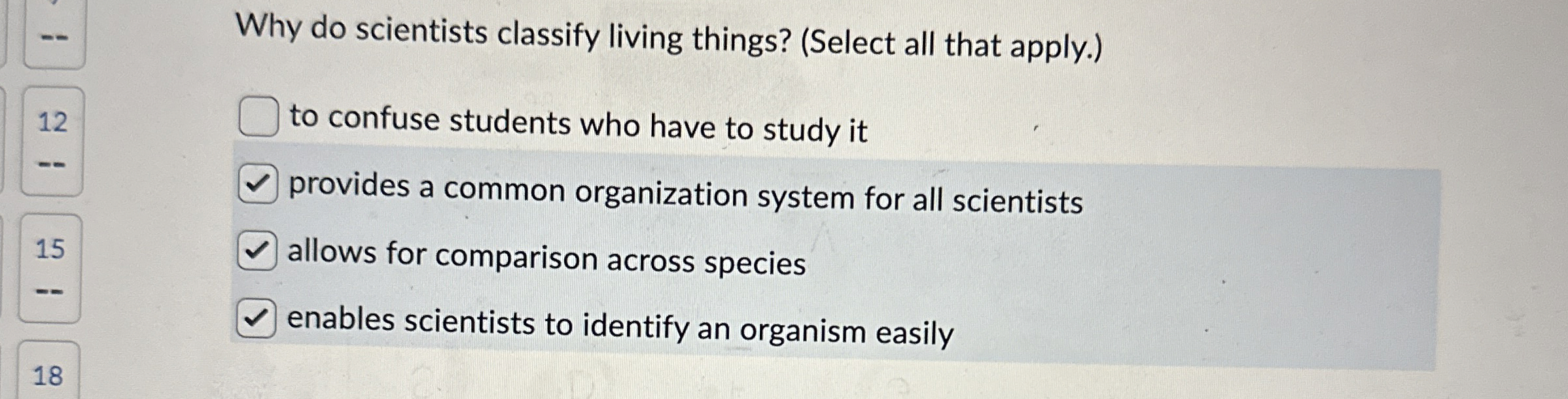Solved Why do scientists classify living things? (Select all