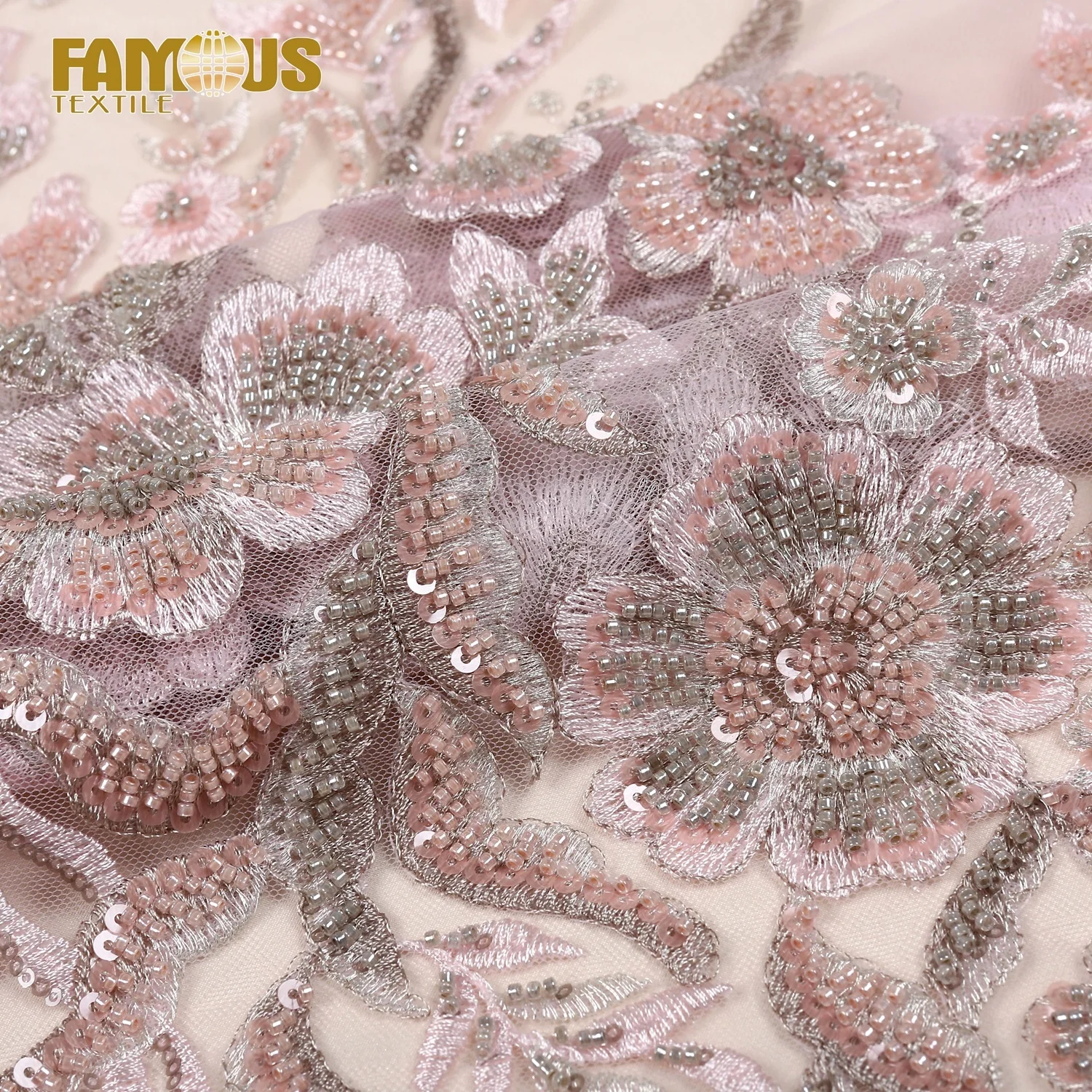 High Quality Wine Red Color Mesh Embroidery Luxury Hand Made Beaded