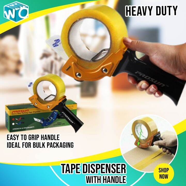 【READY STOCK】 ♟Packing Tape Dispenser with Handle Heavy Duty Portable Packaging Tape Dispenser With Handle Tape gun dispensers come in a variety of sizes and materials. They dispense tape efficiently by holding a roll of tape on a spindle and allowing it to be fed through a serrated blade, with a handle to easily apply the tape to boxes and packages. Designed to be used with 3” core packaging tape up to 2” wide. Scotch®. Packaging Tape Dispenser With Handle.