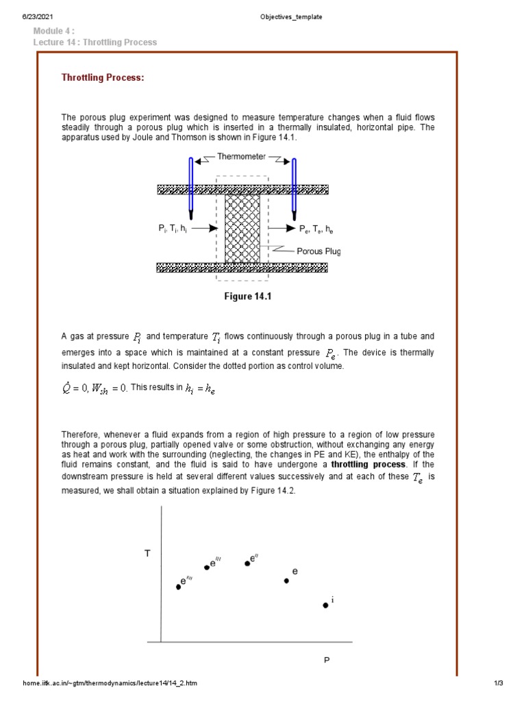 Throttling Process PDF Enthalpy Branches Of Thermodynamics