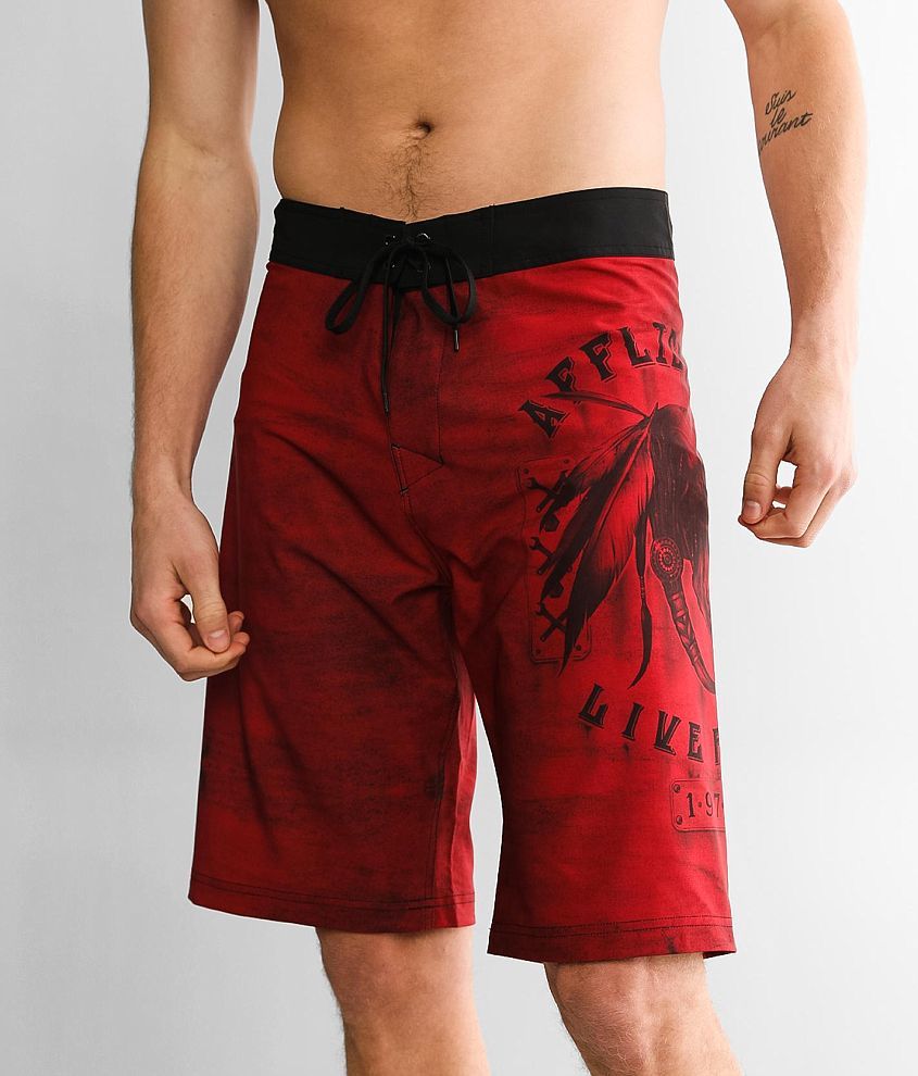 Affliction Apache Garage Stretch Boardshort Men's Swimwear in Red