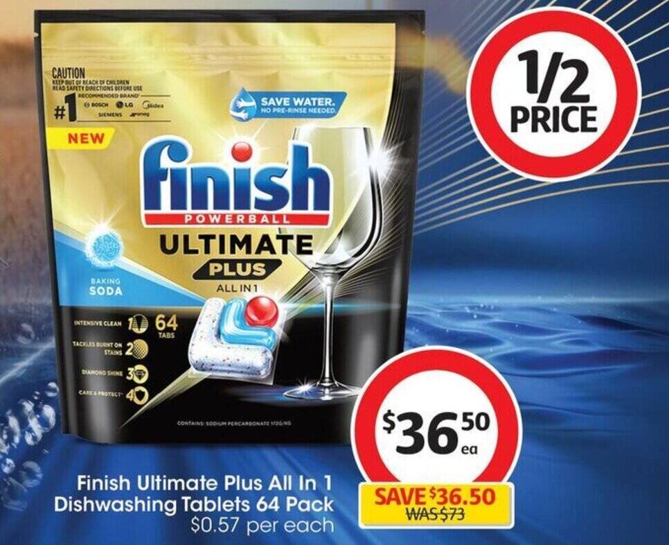 Finish Ultimate Plus All In 1 Dishwashing Tablets 64 Pack offer at Coles