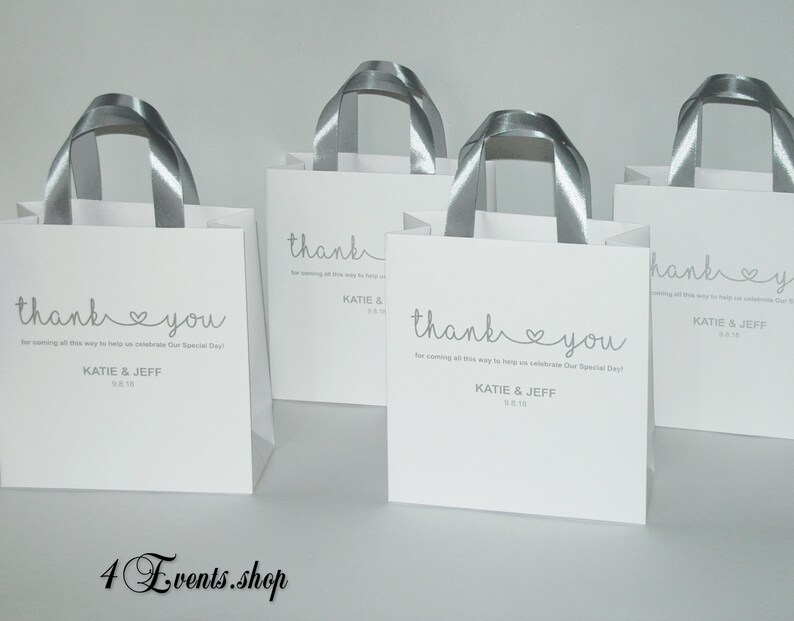 35 Silver Wedding Thank You Bags With Satin Ribbon Handles and Etsy