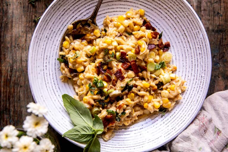 One Pot Cheesy Creamed Corn Orzo. Half Baked Harvest