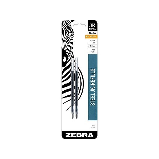 Zebra JKRefill GelInk Pen Refill, Medium Tip, Black Ink, 2/Pack