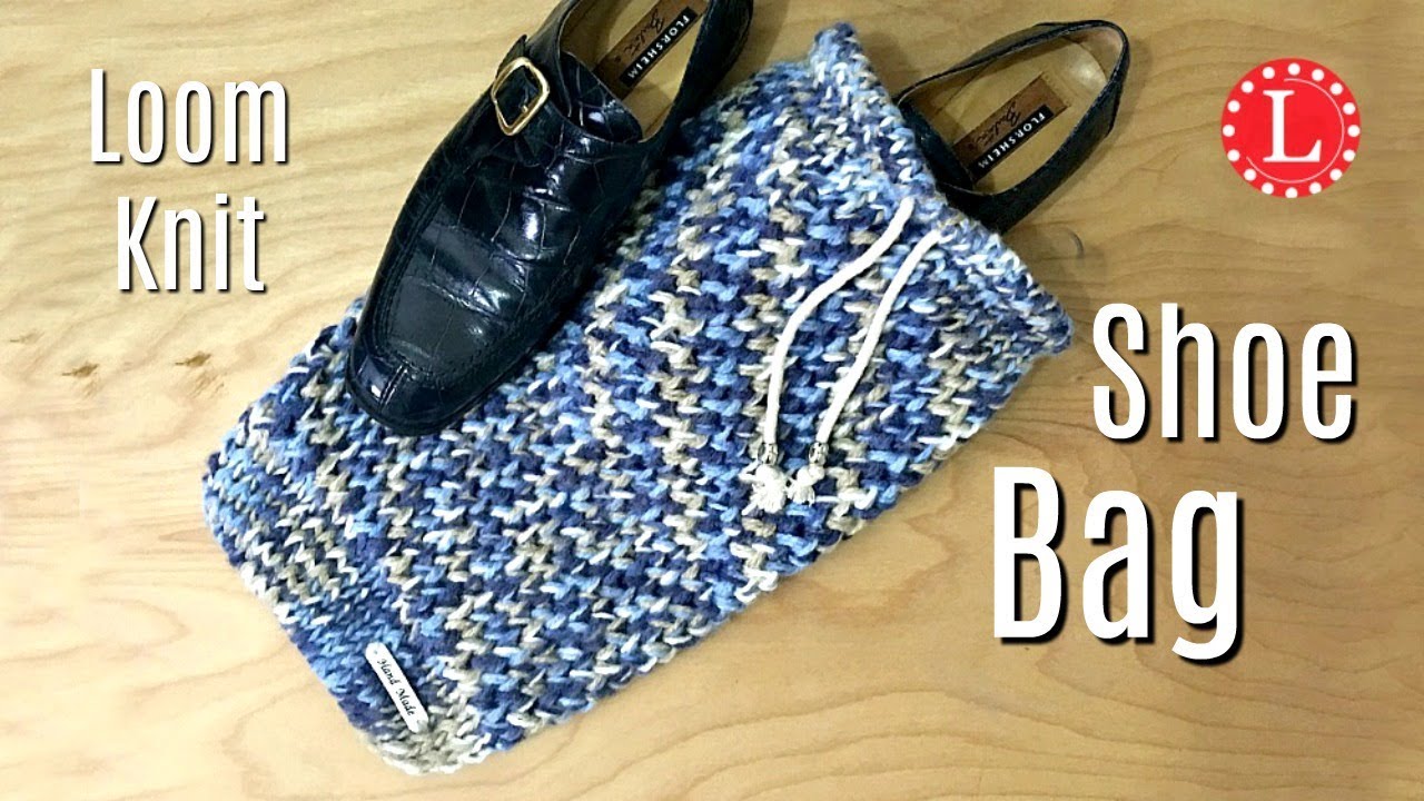 LOOM KNIT Shoe Bag (Drawstring) on a Round Knitting Loom Loomahat
