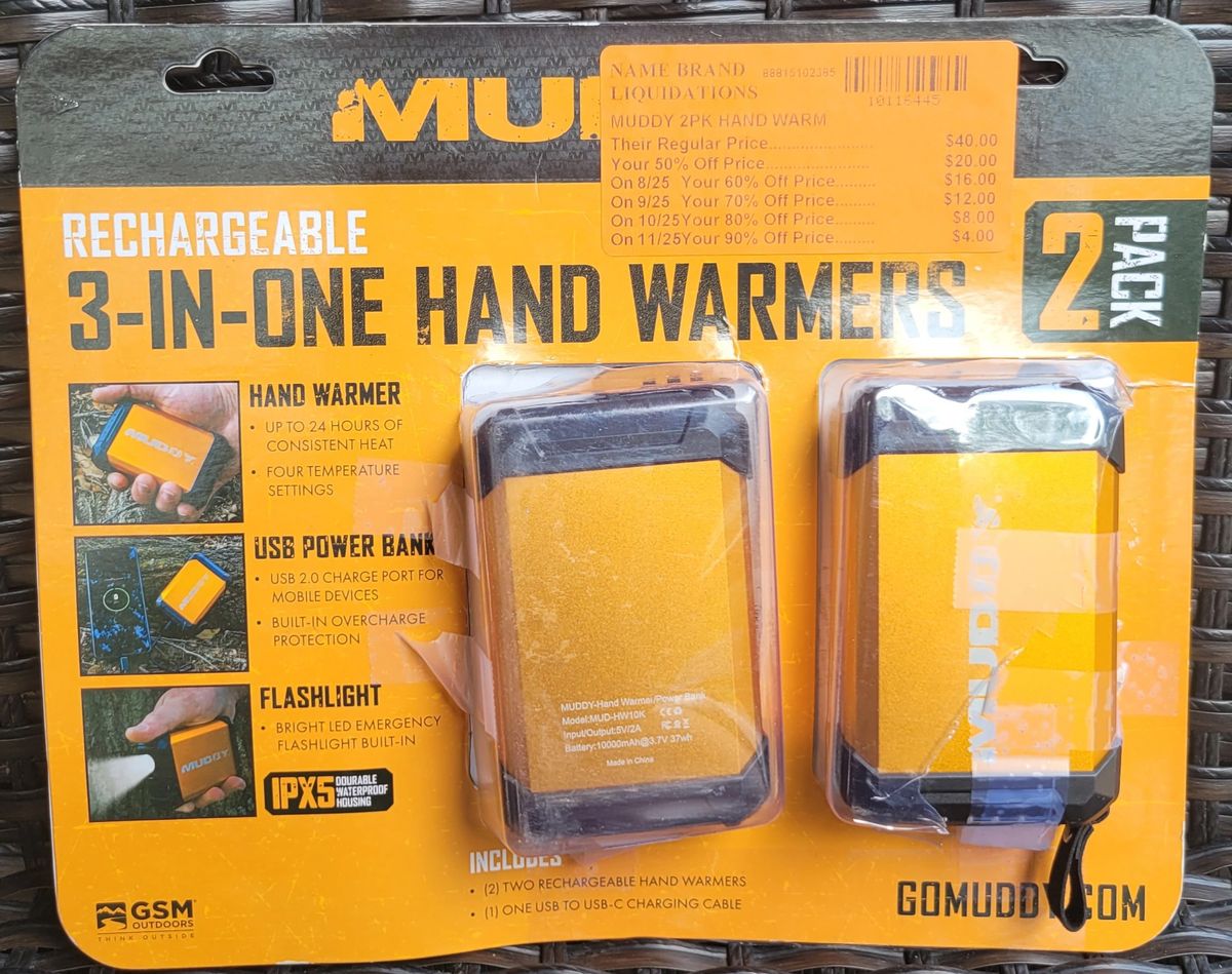 MUDDY 3InOne Hand Warmers 2Pack Muddy Electric Hand Warmers Check each product page for other buying options. Whether you’re an avid outdoor enthusiast or just someone who hates having cold hands during winter, these hand warmers will not disappoint. Up to 24 hours of heat. Muddy Electric Hand Warmers.