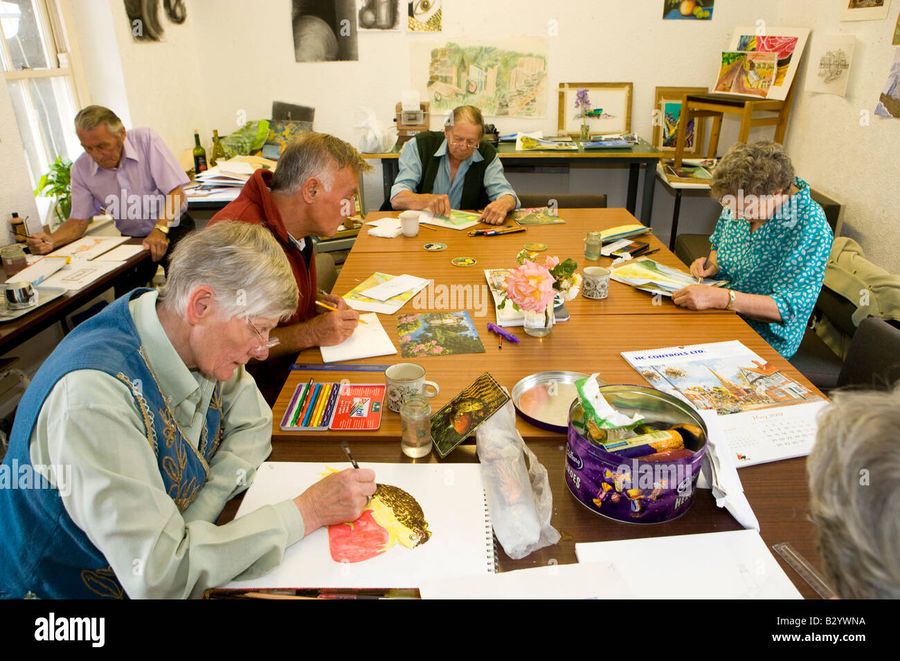 group of elderly people being taught art in a Stock Photo Alamy