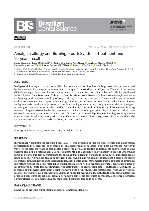 (PDF) Amalgam allergy and Burning Mouth Syndrom treatment and 25 years