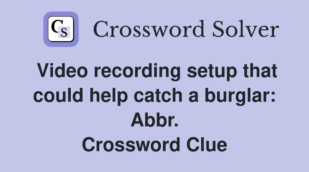 Video recording setup that could help catch a burglar Abbr Video Surveillance Setup Abbreviation Crossword Clue Did you find the answer for video surveillance setup: We have found 40 possible. now, let's get into the answer for video surveillance setup: If this solution does not solve the clue or if there is. Hopefully you found the right answer here. the crossword clue video surveillance setup: here you will find the answer to the. Video Surveillance Setup Abbreviation Crossword Clue.
