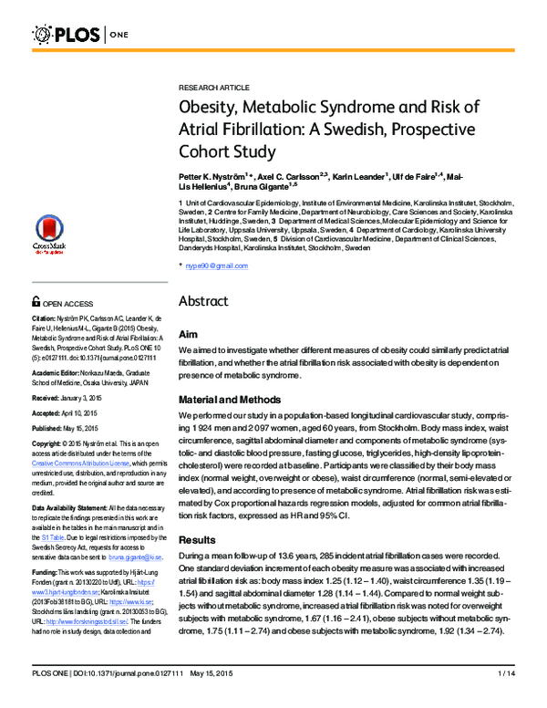 (PDF) Obesity, Metabolic Syndrome and Risk of Atrial Fibrillation A