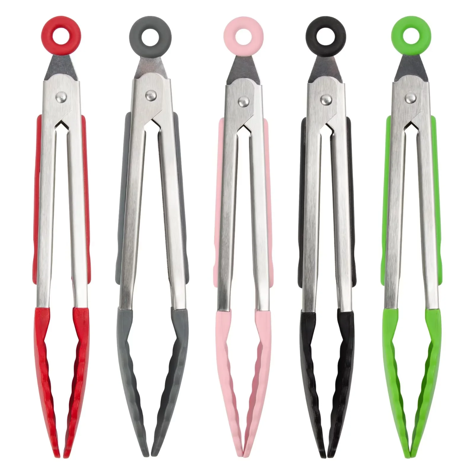 ALL PRIDE Set of 5 Silicone Locking Tongs for Cooking, 7" Multicolor