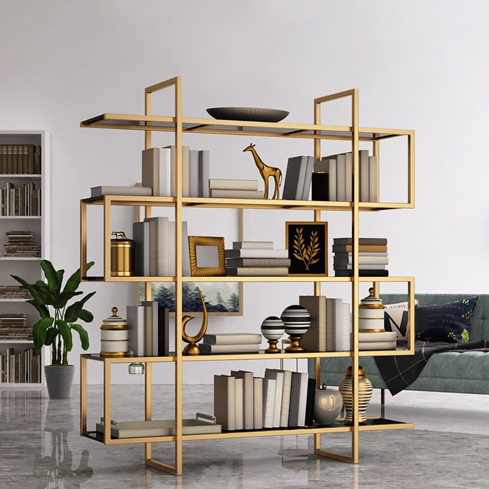 Modern 4Tier Metal Bookcase, Metal Open Shelf Storage, Etagere Tall Bookshelf Etagere Crafted from steel with a chrome. Display your keepsakes, trophies, and treasured items in contemporary style with this 79'' etagere bookshelf. Transform mundane corners into thriving, stylish. Bookshelf Etagere.